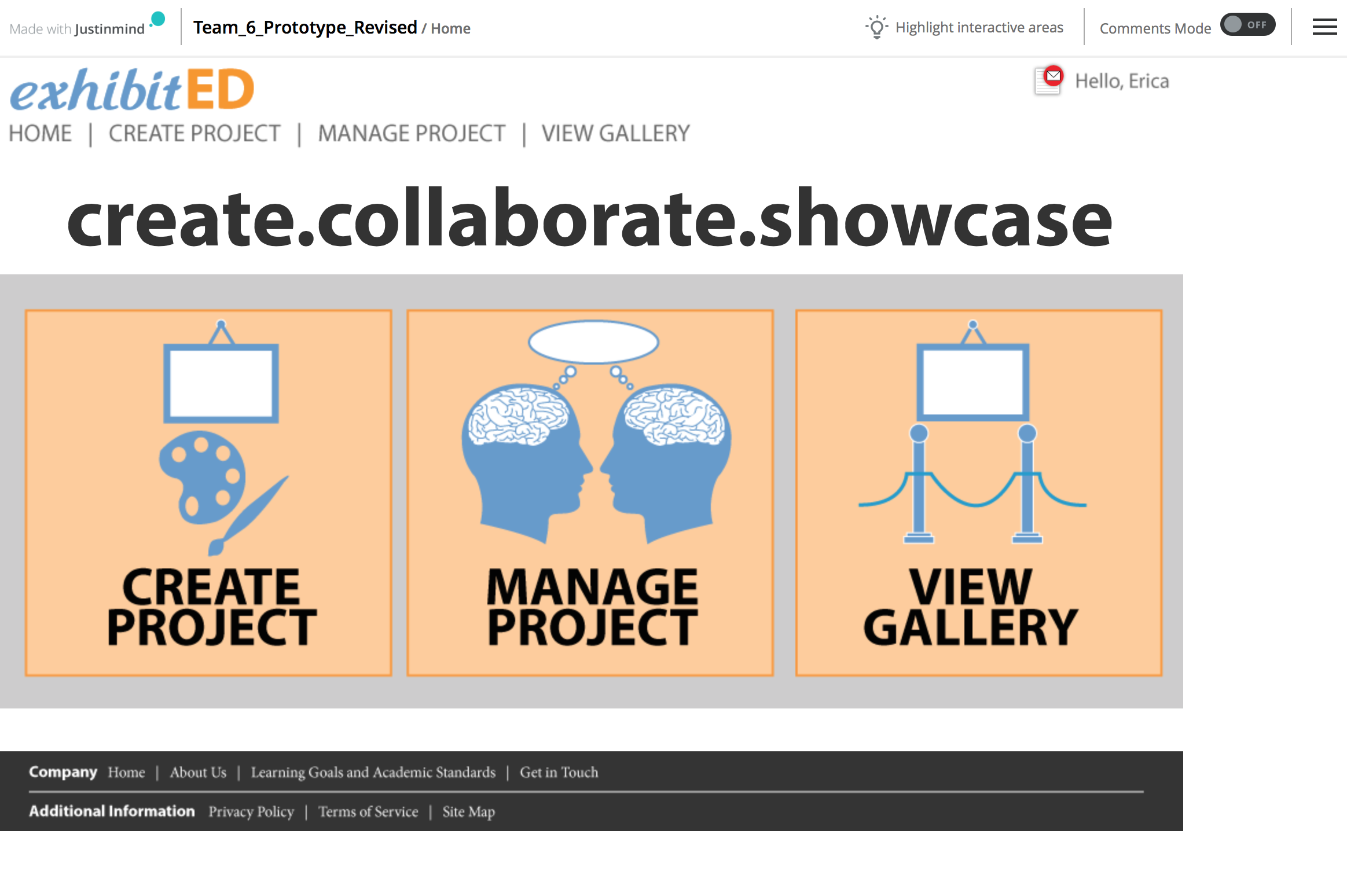 exhibitED is the work of a three-person team. Our prototype was collaboratively created with Justinmind. This website provides a common space for not only the educator, but the students to share their work as well as work with other students on group projects. They can create projects, manage their workload and view other students projects in the gallery once they are published. Educators can perform administrative functions and communicate with their students as well as communicate with other educators as well.