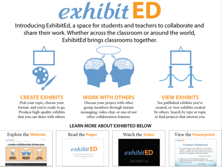 exhibitED was created to fulfill a need in the educational realm with both a social and collaborative environment for students and teachers alike. This web-based platform affords students the opportunity for a dynamic learning environment.